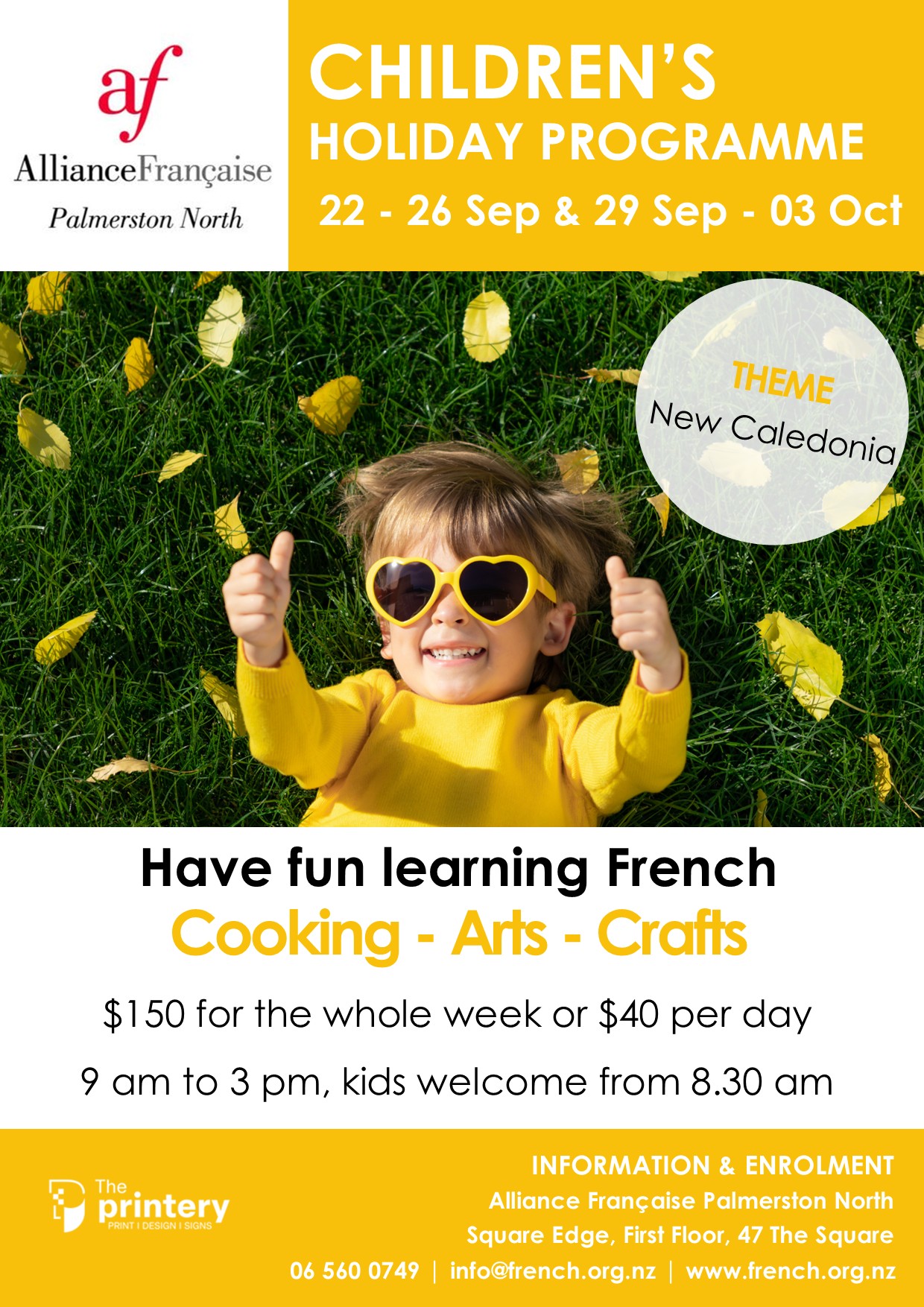 Activities run at the Alliance Française Palmerston North studio from 9 am to 3 pm. Children welcome