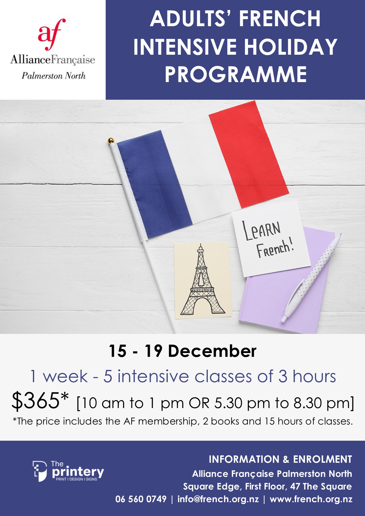 For more information, please send us an email at info@french.org.nz or call us 06 560 0749.