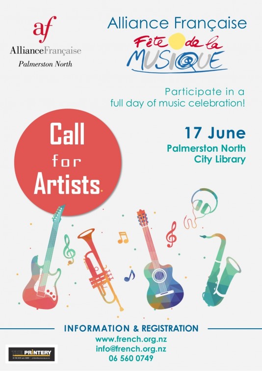 This year again, the Alliance Française is organising its free event "Fête de la musique" in Palmerston North to showcase the diversity of the local French-speaking community and promote all styles of French music including rock, jazz, chanson, opera, poems, traditional songs and more...