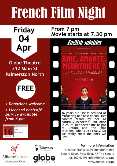Join us for our monthly French Film Night on Friday 04 April at Globe Theatre.