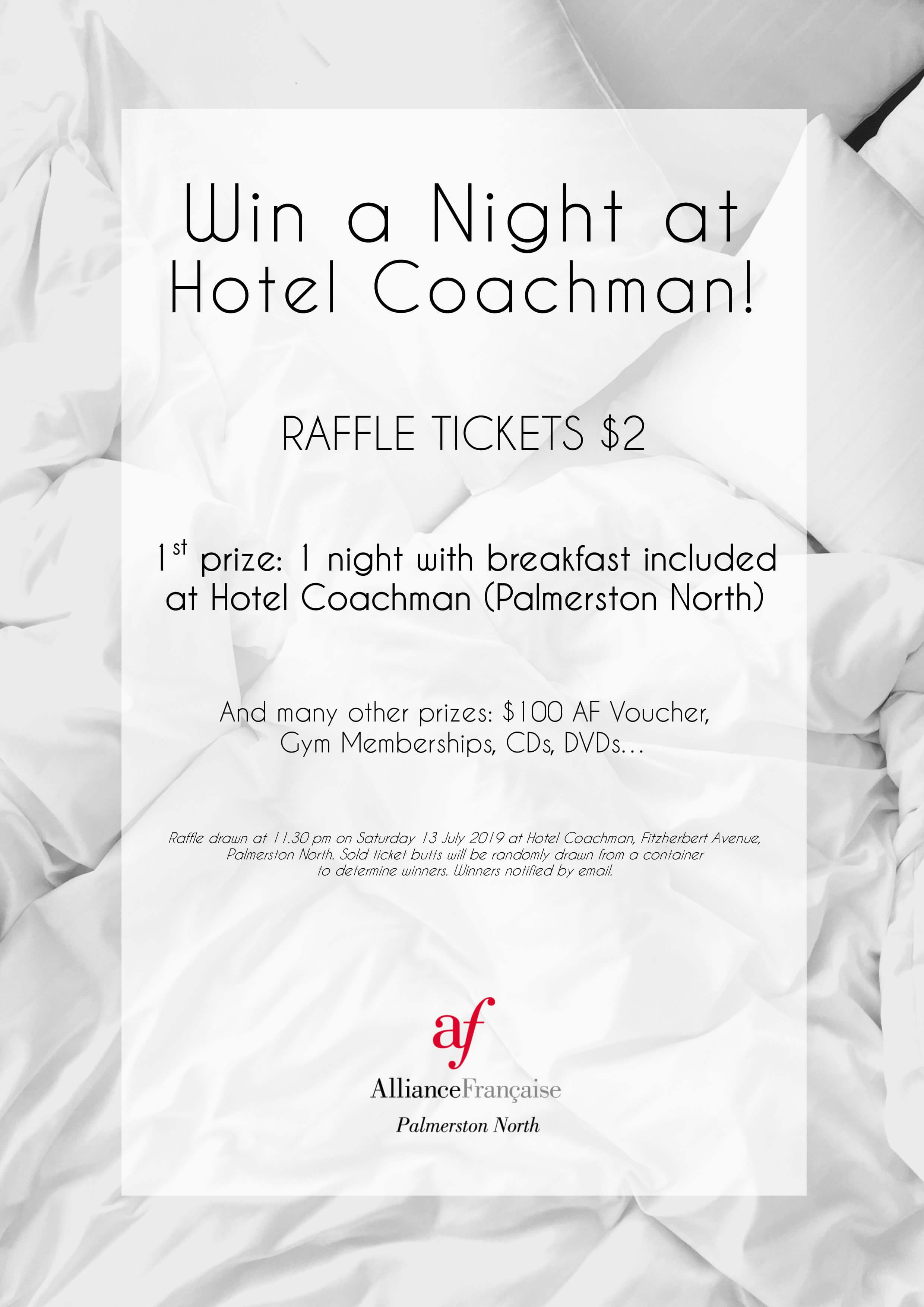 Get your ticket for our Bastille Day Raffle and try to win a hotel night with breakfast included at Hotel Coachman!