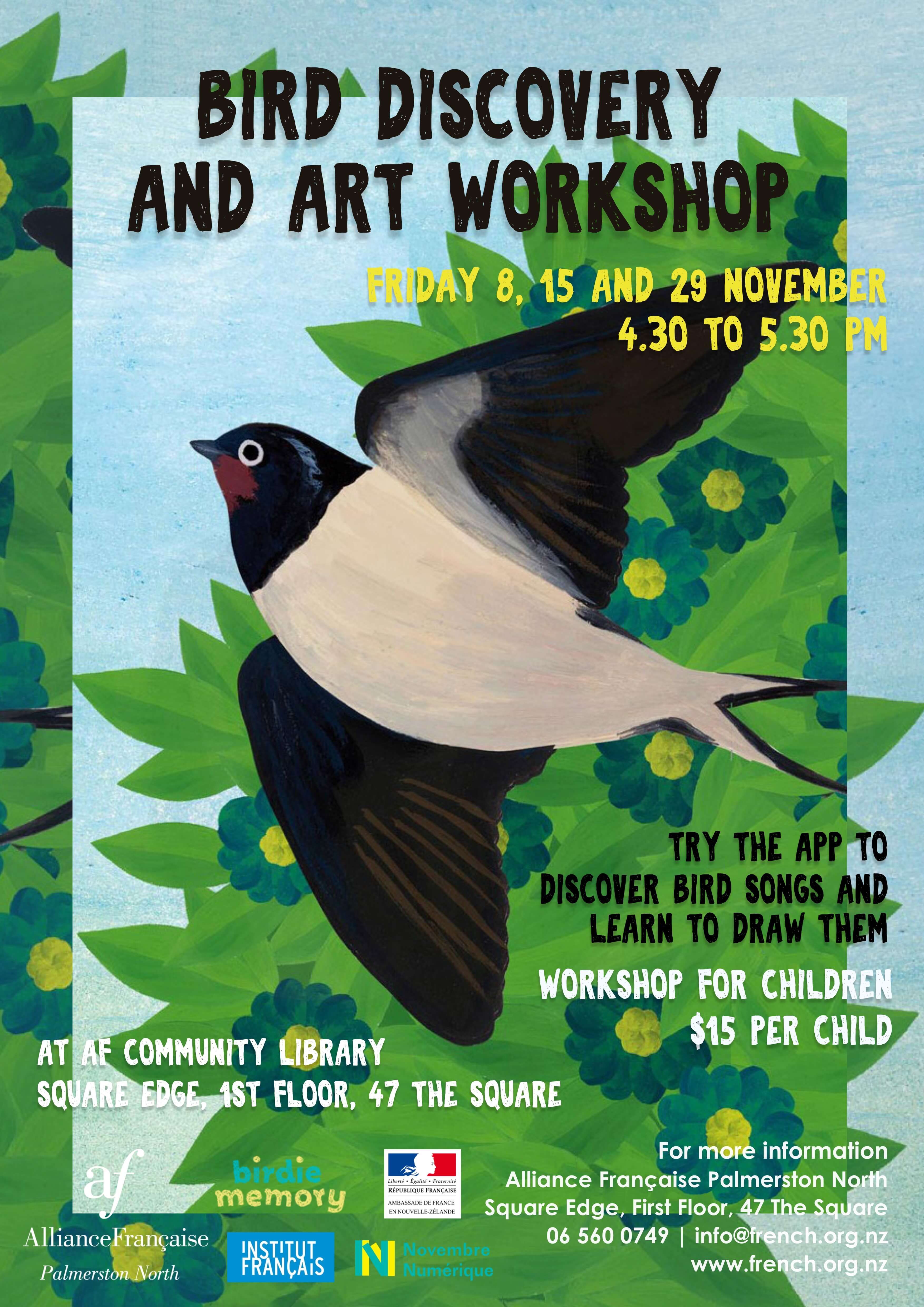 Sign up your kids to these one-hour workshops to discover birds and their songs, and to improve your children's art skills!