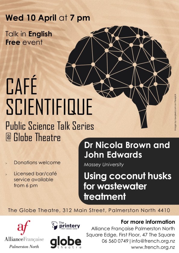 Dr Nicola Brown and John Edwards will be talking about "Using coconut husks for wastewater treatment".