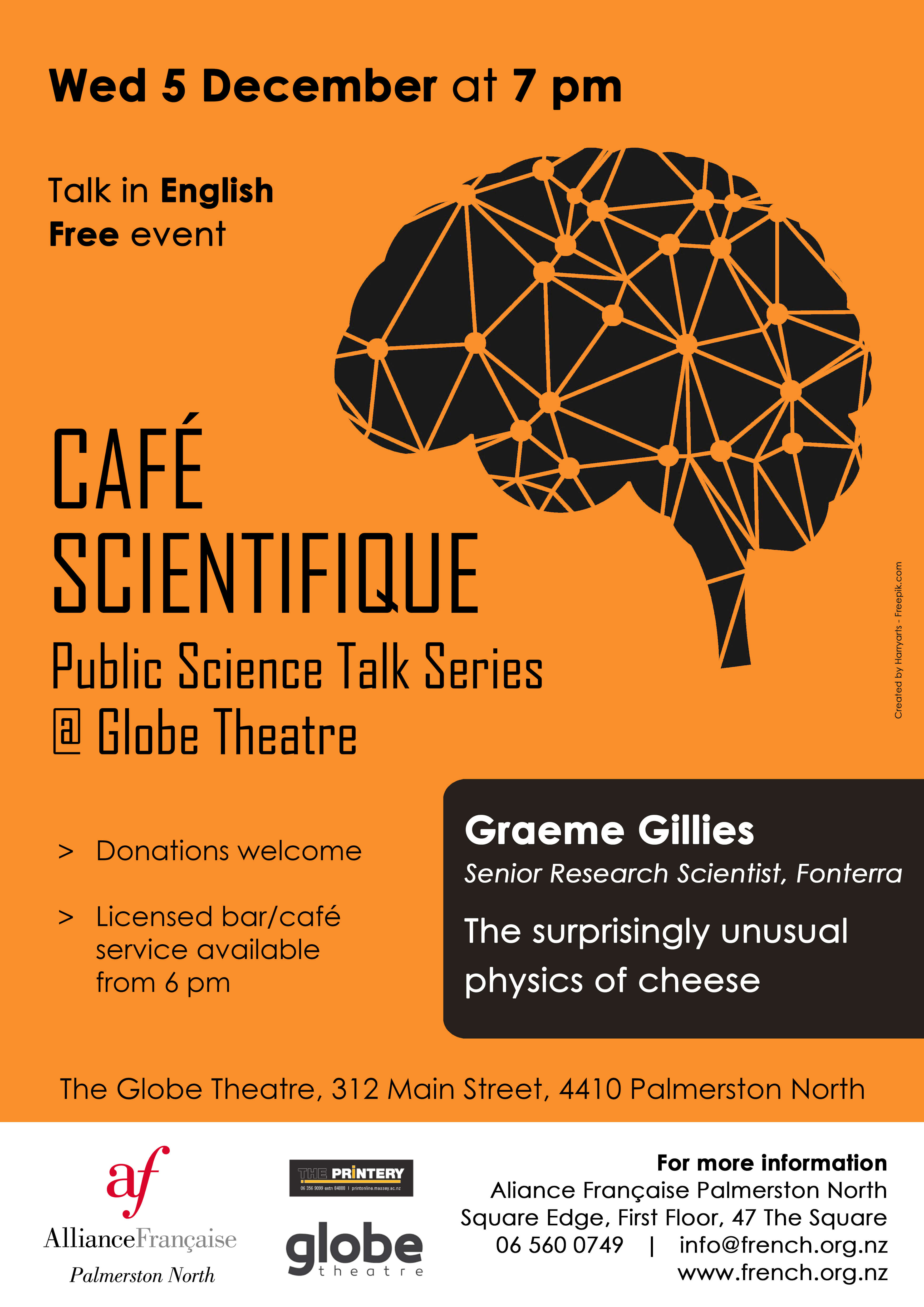 Graeme Gillies, Senior Research Scientist for Fonterra, will be talking about "The surprisingly unusual physics of cheese". Don't miss