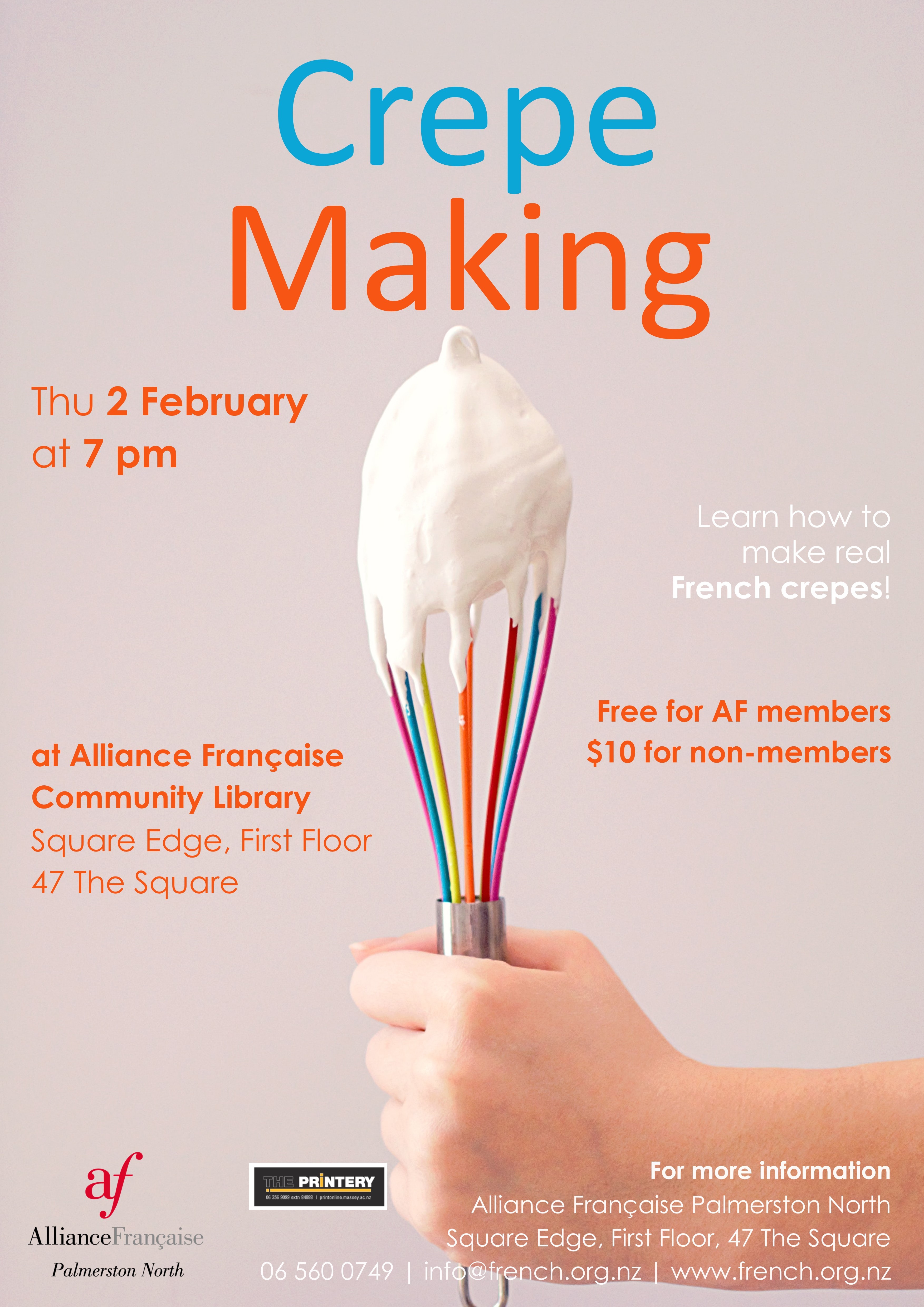 We need your help for the Festival of Cultures! Every year, the Alliance Francaise Palmerston North holds a crepes stall at the Festival of