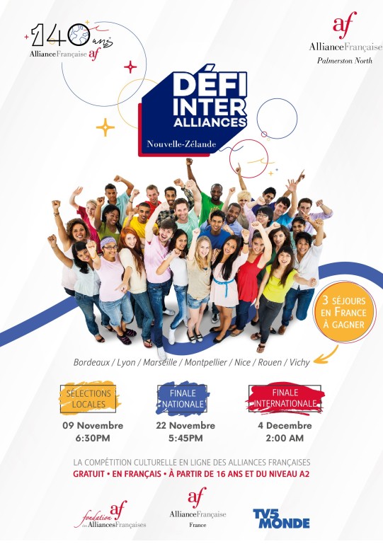 To enter, you must be a student at Alliance Française Palmerston North for Term 4 2023 in a A2, B1, B2 or C1 class.