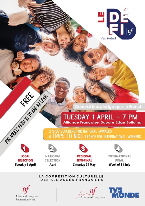 To enter, you must be a student at Alliance Française Palmerston North for Term 1 2025 in a A2, B1, B2 or C1 class.