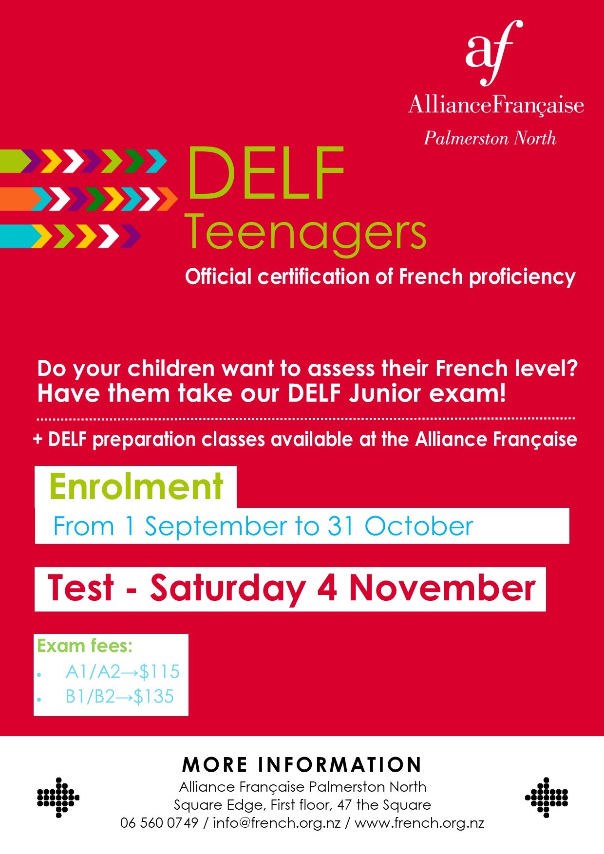 Enrolments will be open from 1 September to 31 October. The DELF examination will be held on Saturday 4 November.