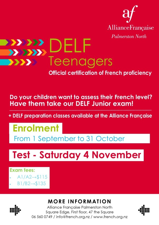 Enrolments will be open from 1 September to 31 October. The DELF examination will be held on Saturday 4 November.