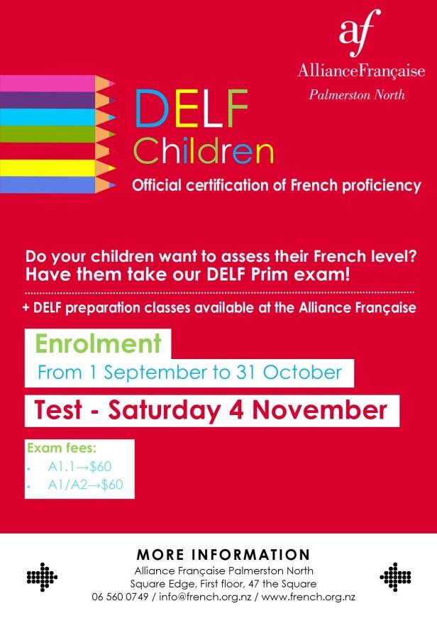 Enrolments will be open from 1 September to 31 October. The DELF examination will be held on Saturday 4 November.