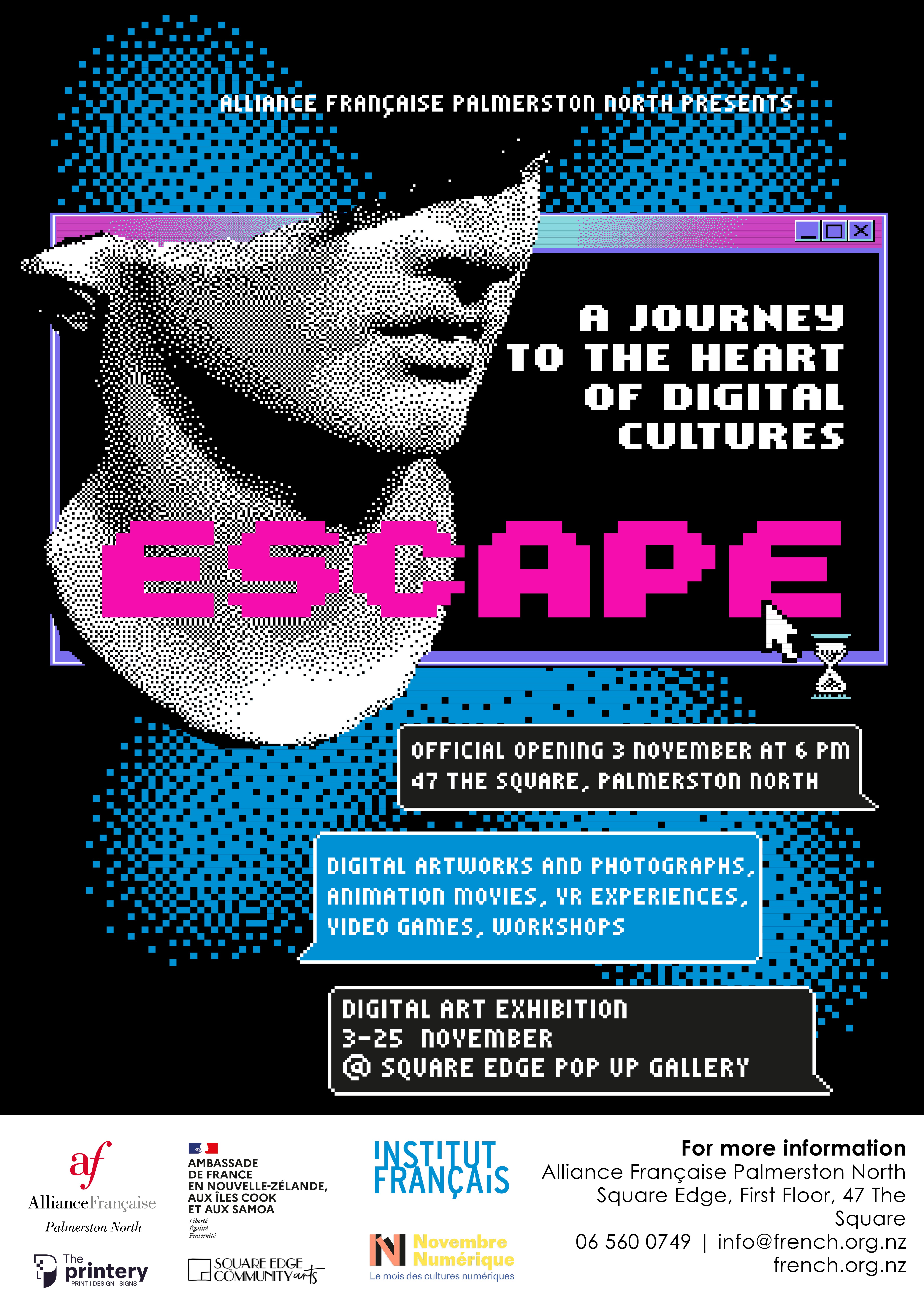 Française Palmerston North is proud to present the digital exhibition ''Escape, a Journey to the Heart of Digital Cultures''.