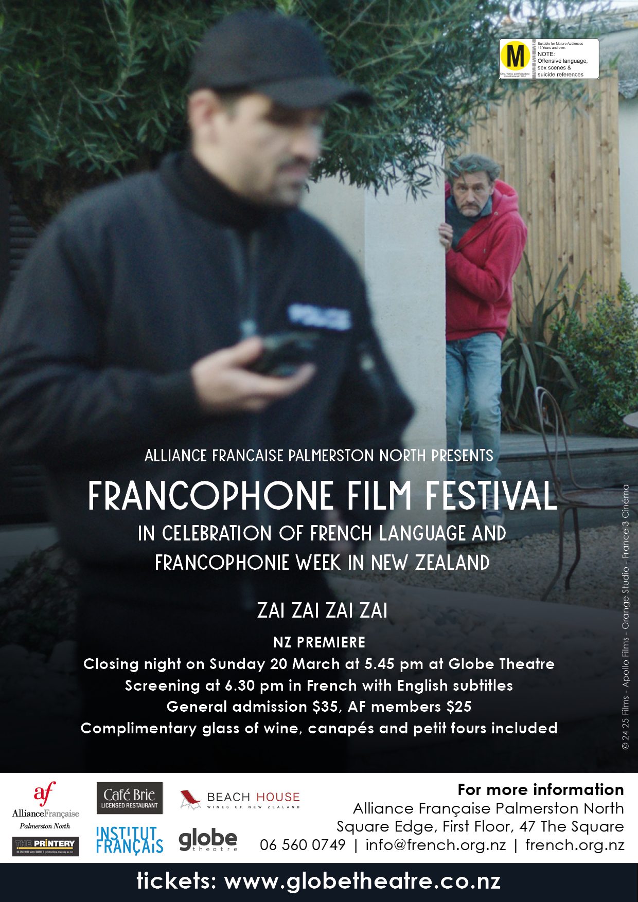 This comedy, Zaï Zaï Zaï Zaï, will be screened on Sunday 20 March at The Globe Theatre, 312 Main St, Palmerston North.