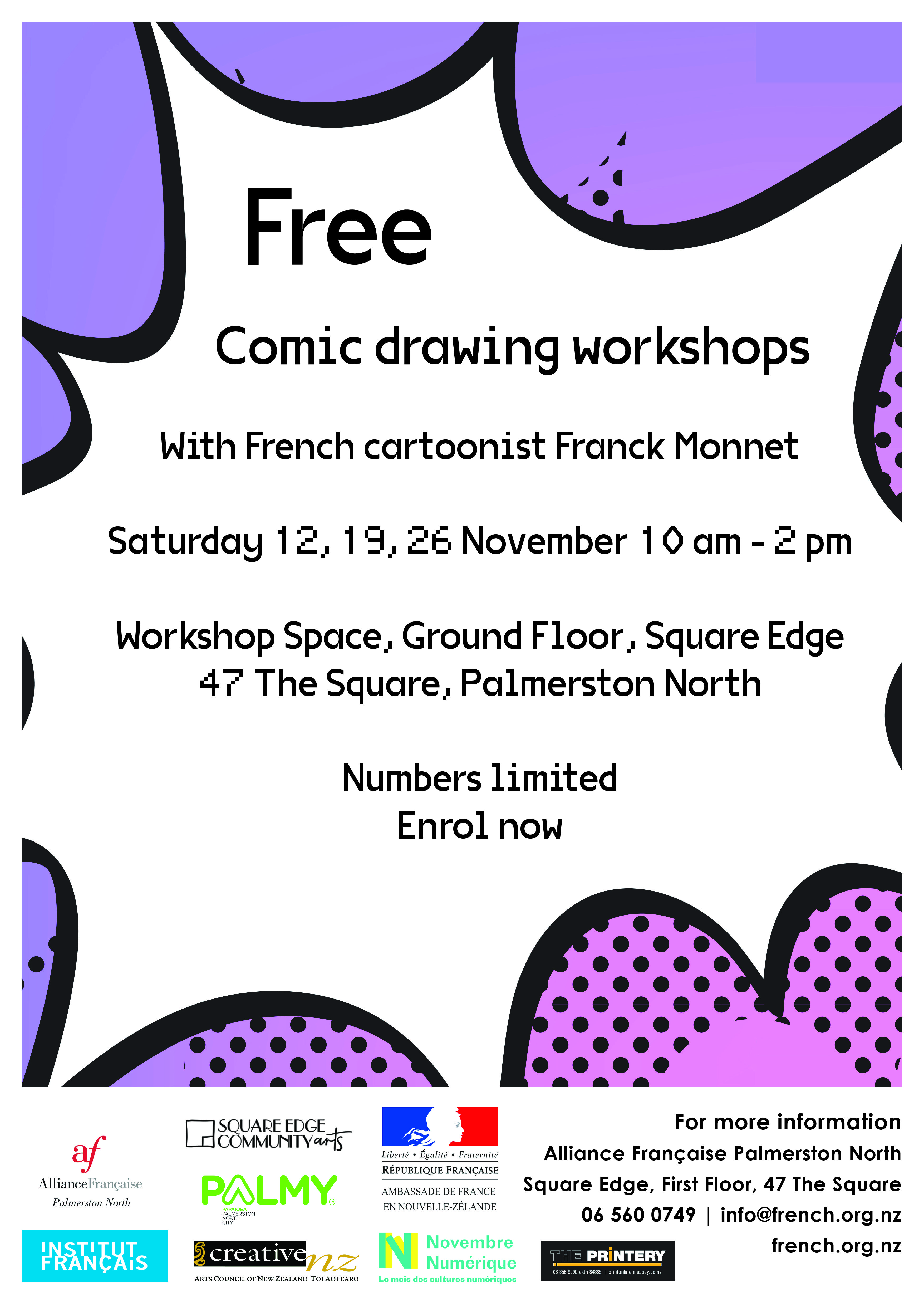 FREE comic drawing workshops by French cartoonist Franck Monnet.