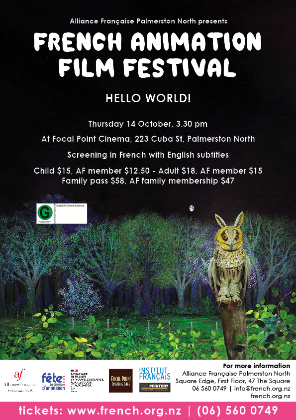 Alliance Française Palmerston North presents the French Animation Film Festival: a series of screenings for children, at Focal Point