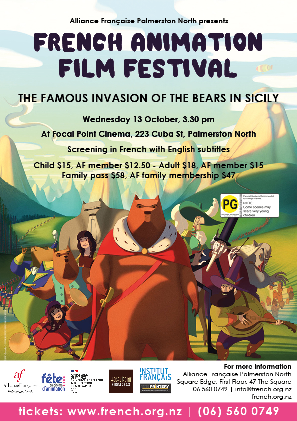 Alliance Française Palmerston North presents the French Animation Film Festival: a series of screenings for children, at Focal Point