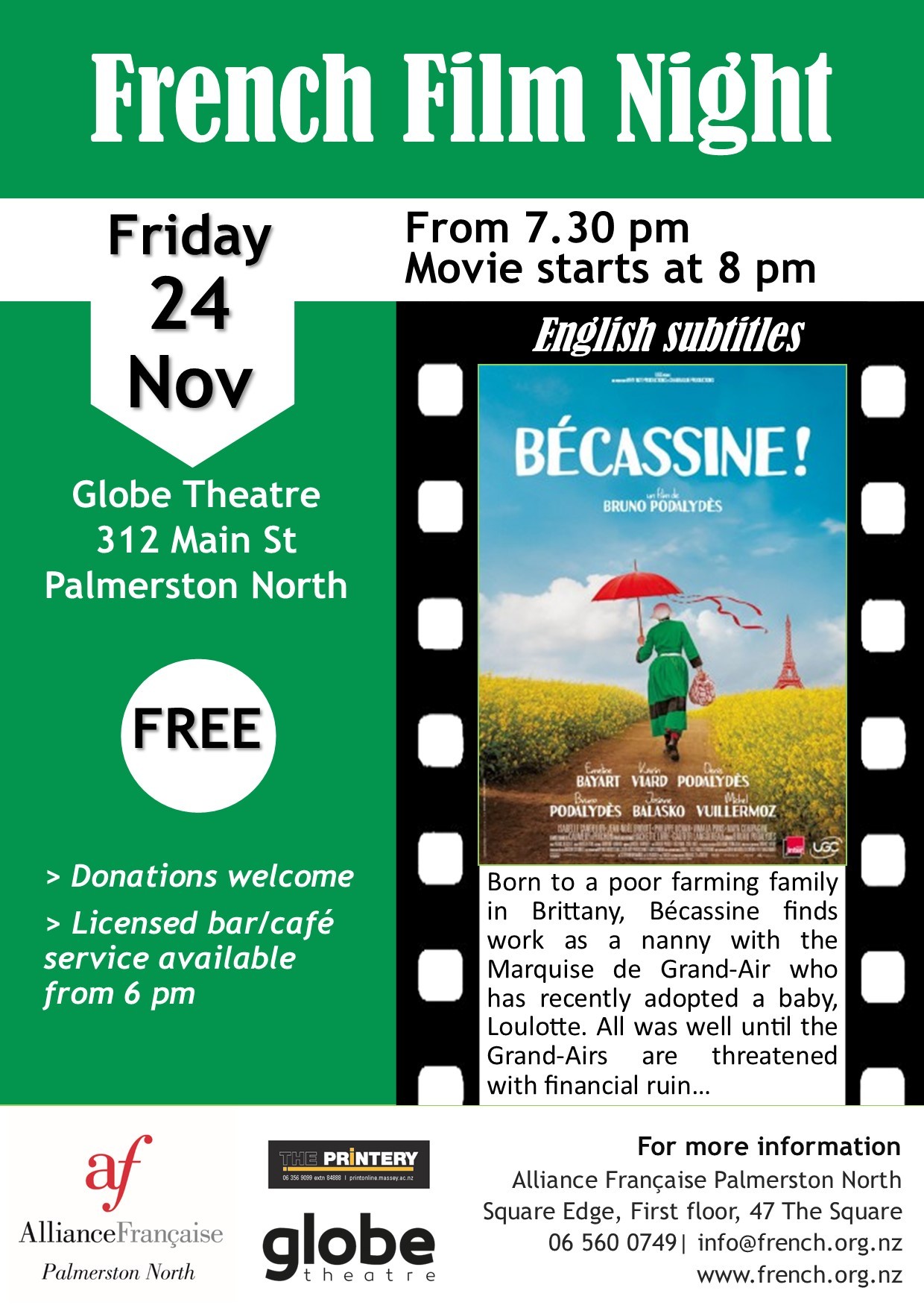 Join us for our monthly French Film Night on Friday 24 November at Globe Theatre.