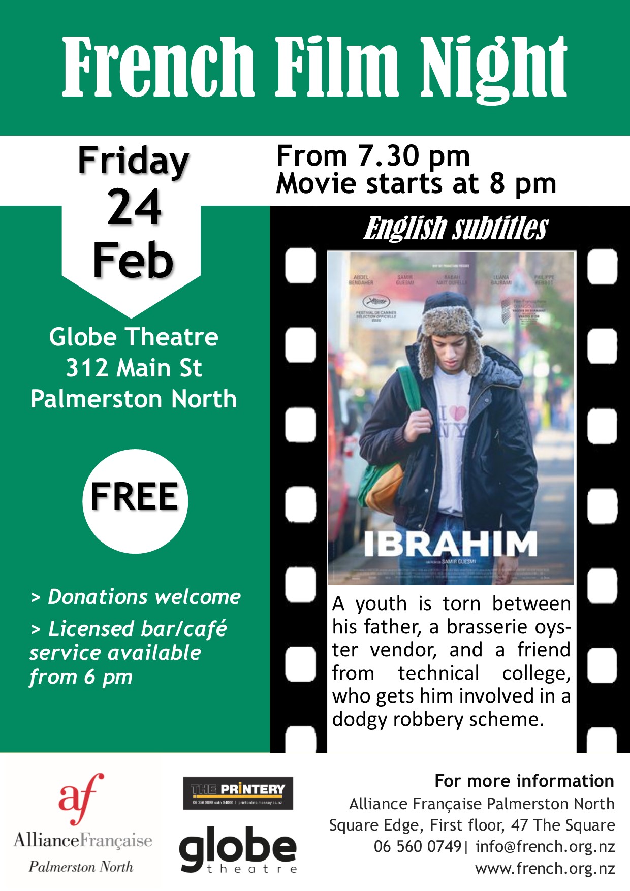 Join us for our monthly French Film Night on Friday 24 February at the Globe Theatre.
