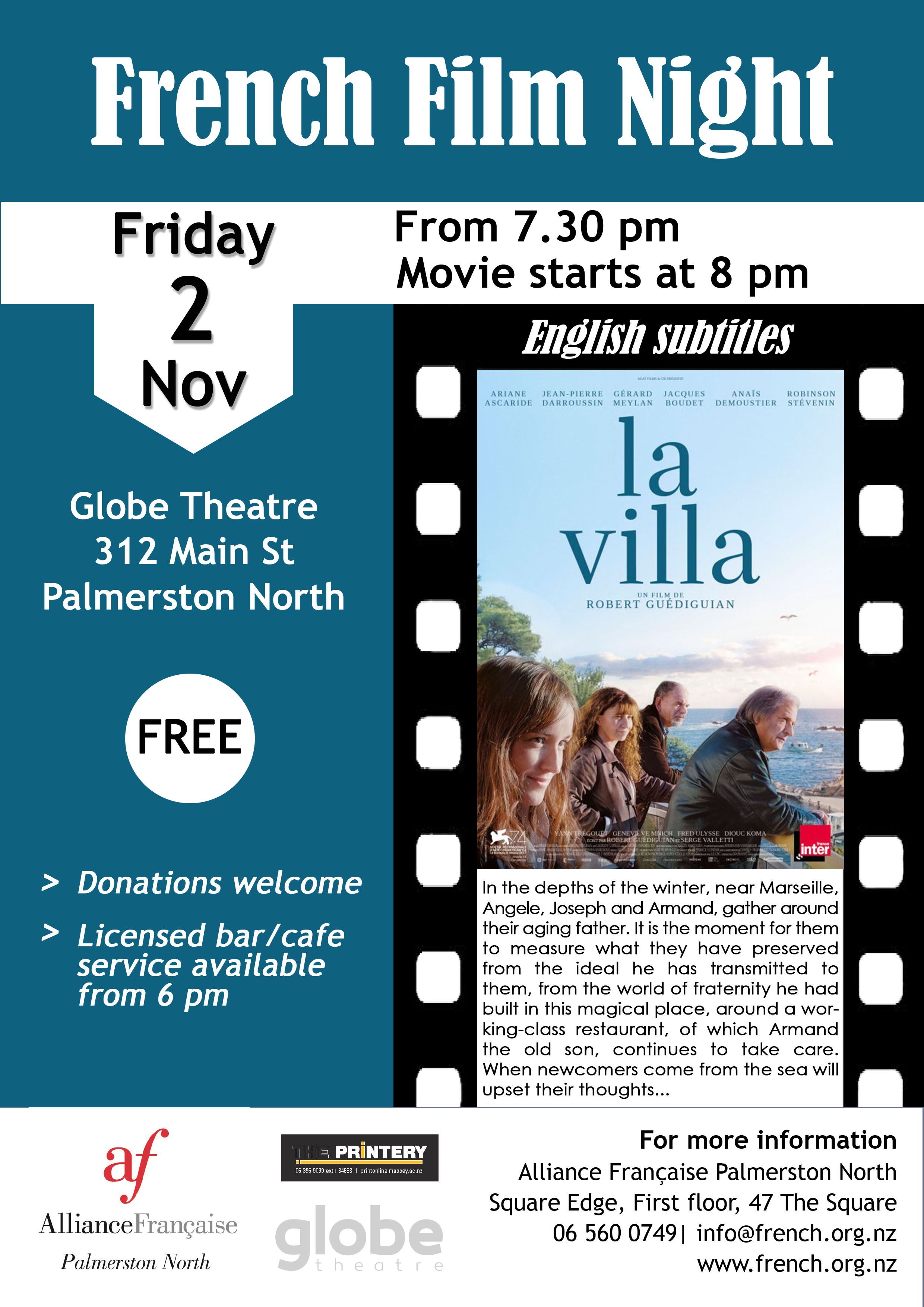 Street, Palmerston North 4410): the French movie "La Villa" will be screened with English subtitles.