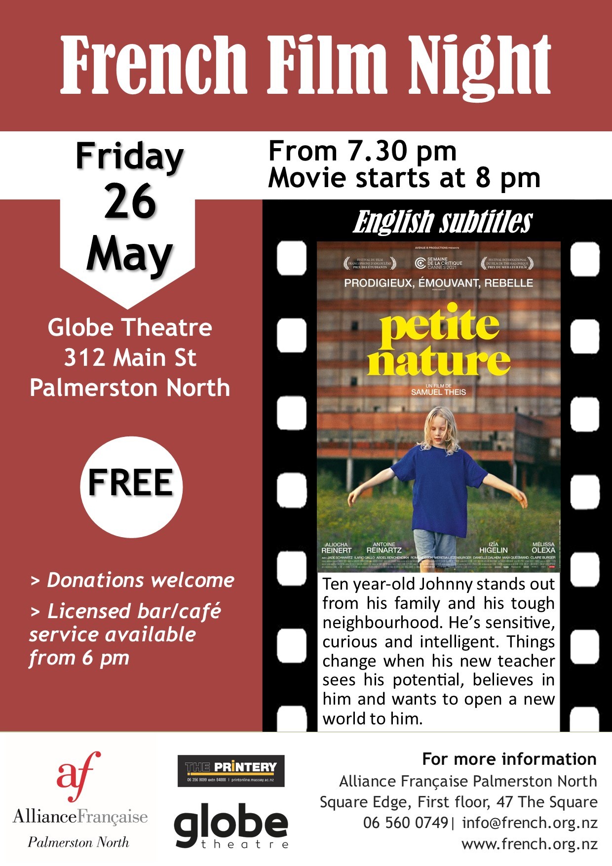 Join us for our monthly French Film Night on Friday 26 May at Globe Theatre.