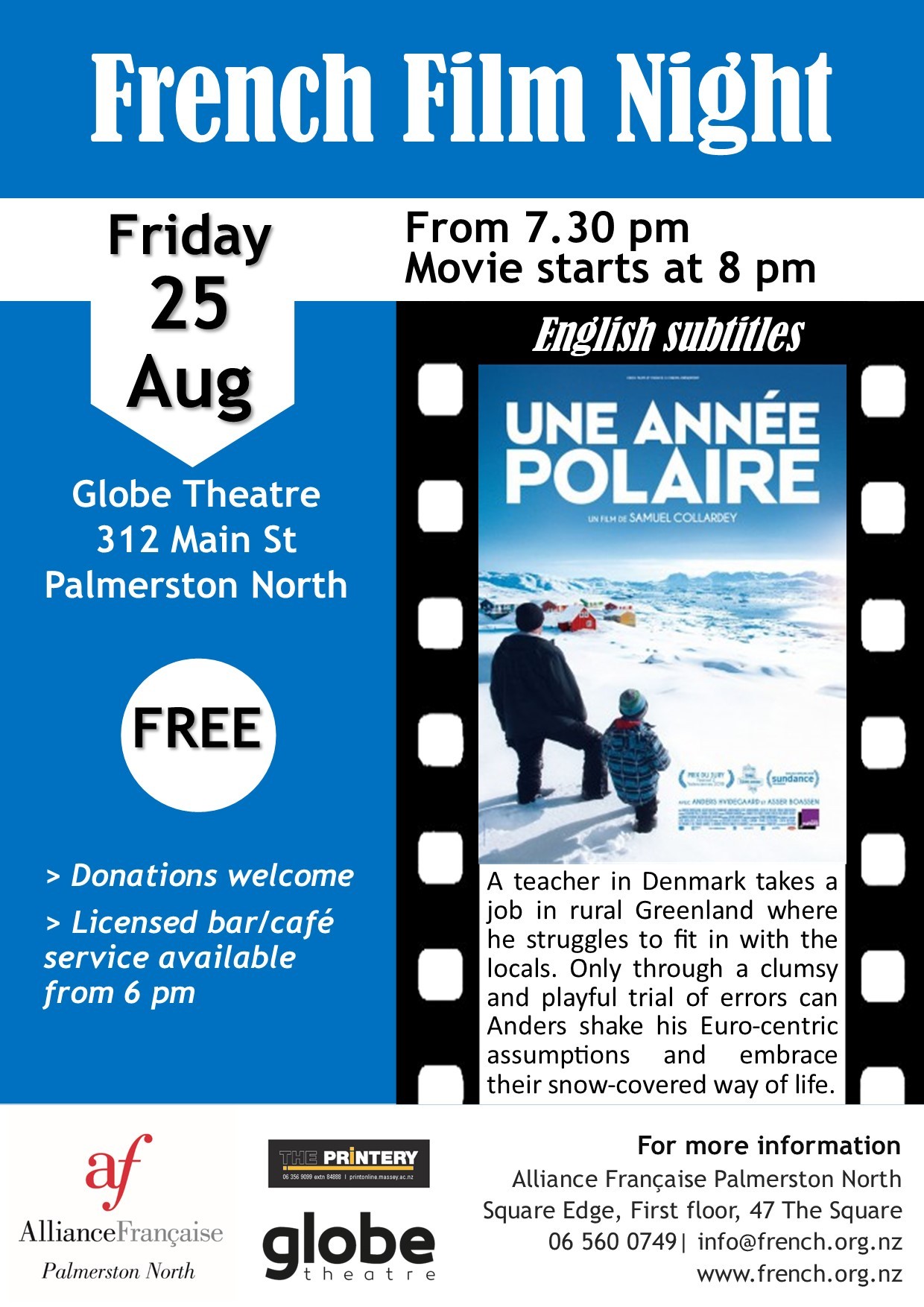 Join us for our monthly French Film Night on Friday 25 August at Globe Theatre.