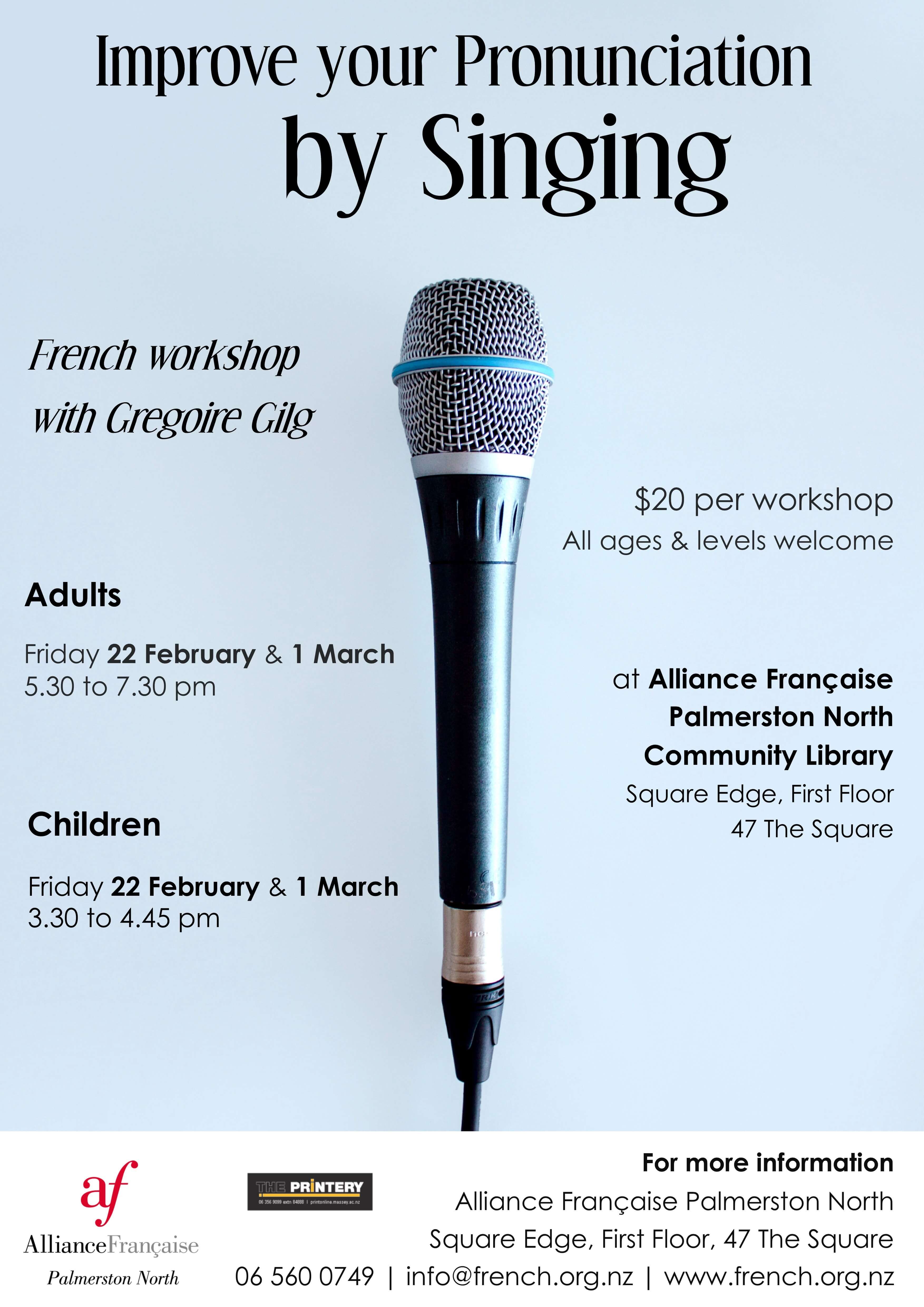 Gregoire Gilg will be holding 4 workshops at Alliance Française Palmerston North, a great chance to improve your French skills in a fun and original way!