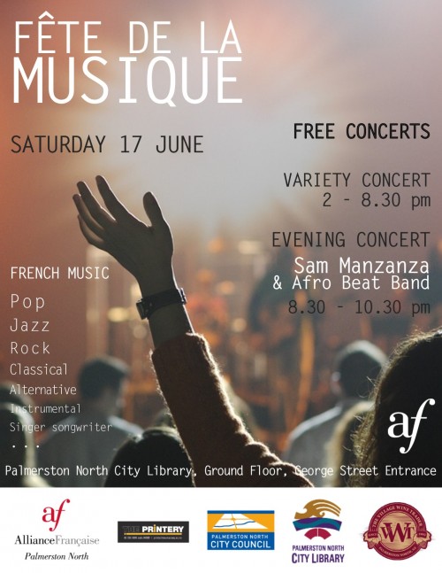 Come and celebrate the Fête de la Musique with Alliance Française Palmerston North, on Saturday 17 June, from 2 pm to 10.30 pm, at Palmerston North City Library!