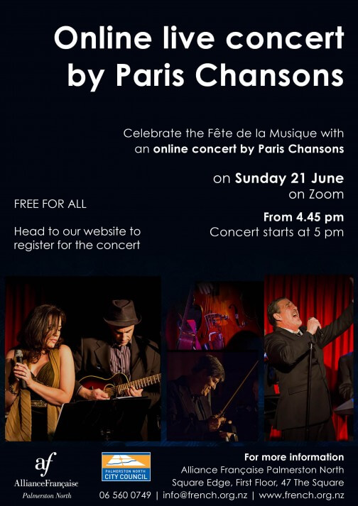 During the concert, test your French musical knowledge and try to win a $100 Alliance Française Palmerston North gift voucher with a short