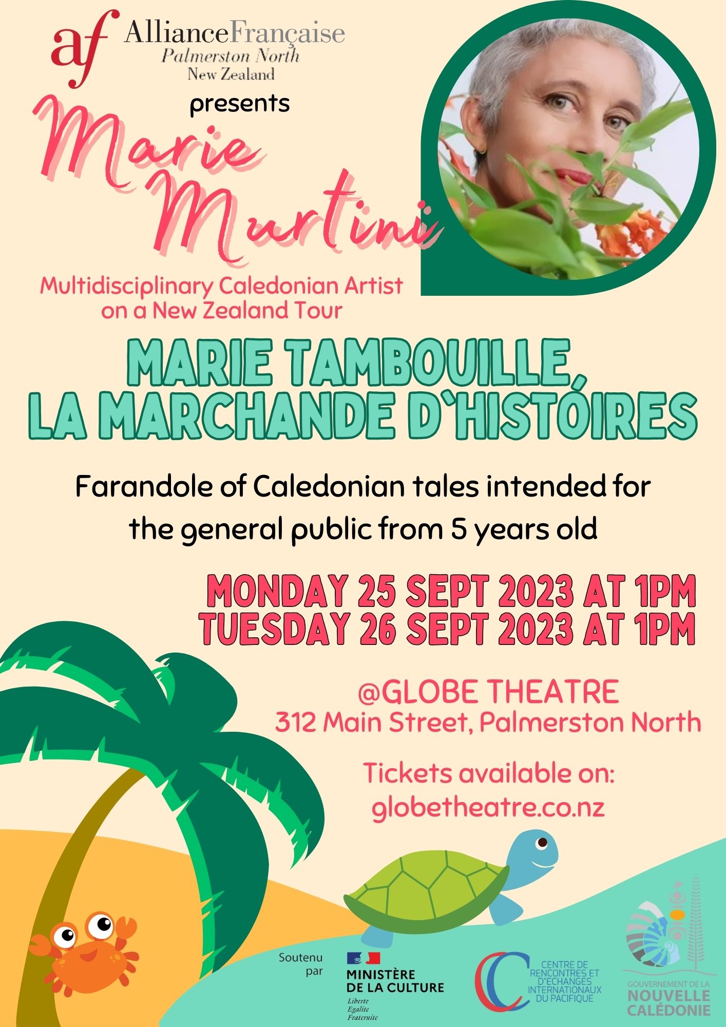 The Alliance Française Palmerston North is proud to host Marie Murtini at the Globe Theatre for several performances of three shows on