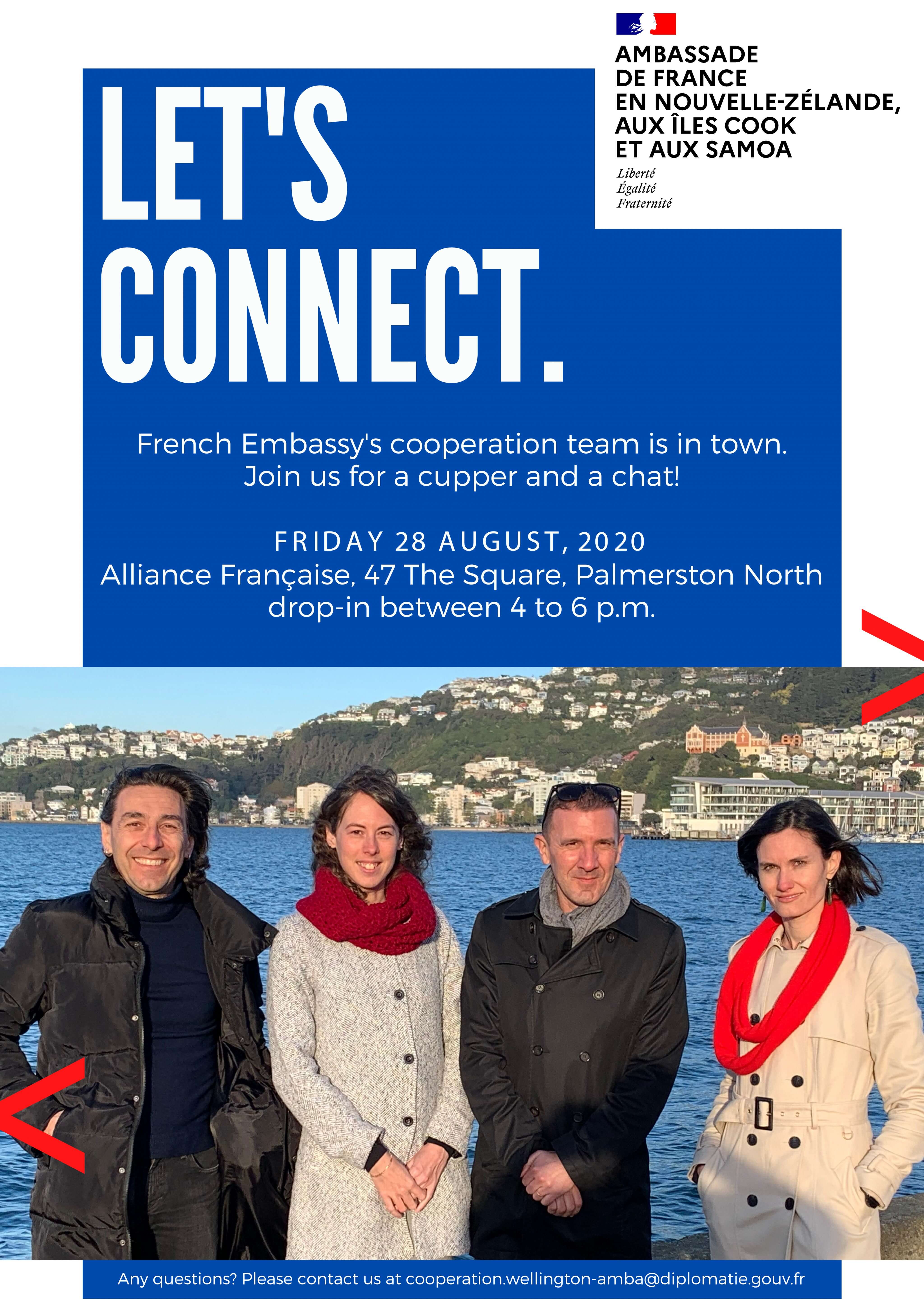 to connect with the French Embassy cooperation team who will be visiting from Wellington.