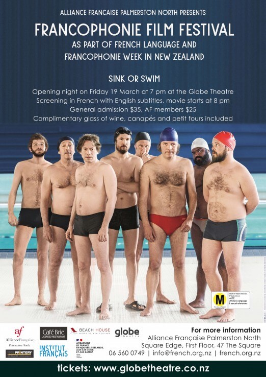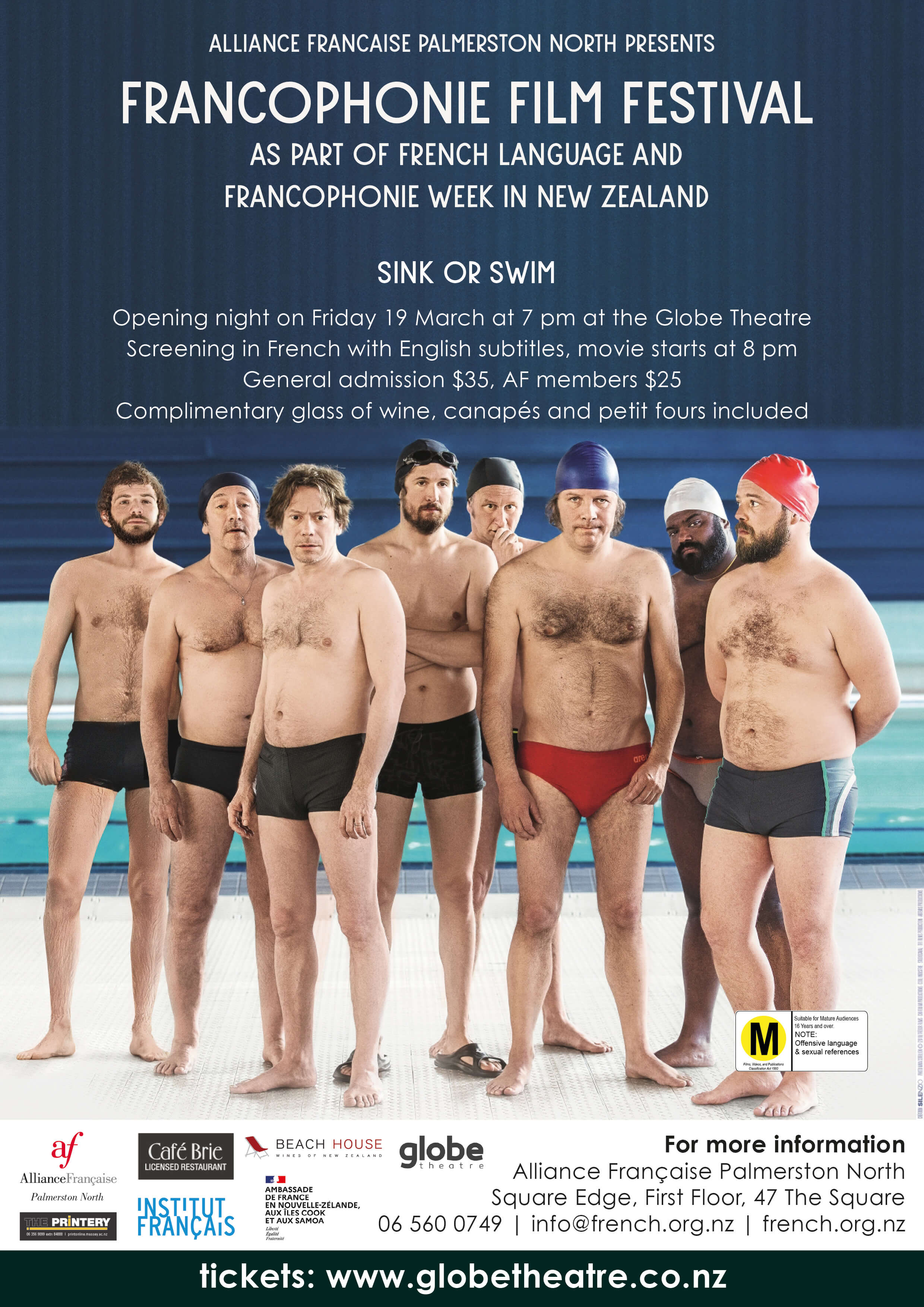 This feel-good comedy, Sink or Swim, will be screened on Friday 19 March at 7 pm at The Globe Theatre, 312 Main St, Palmerston North.