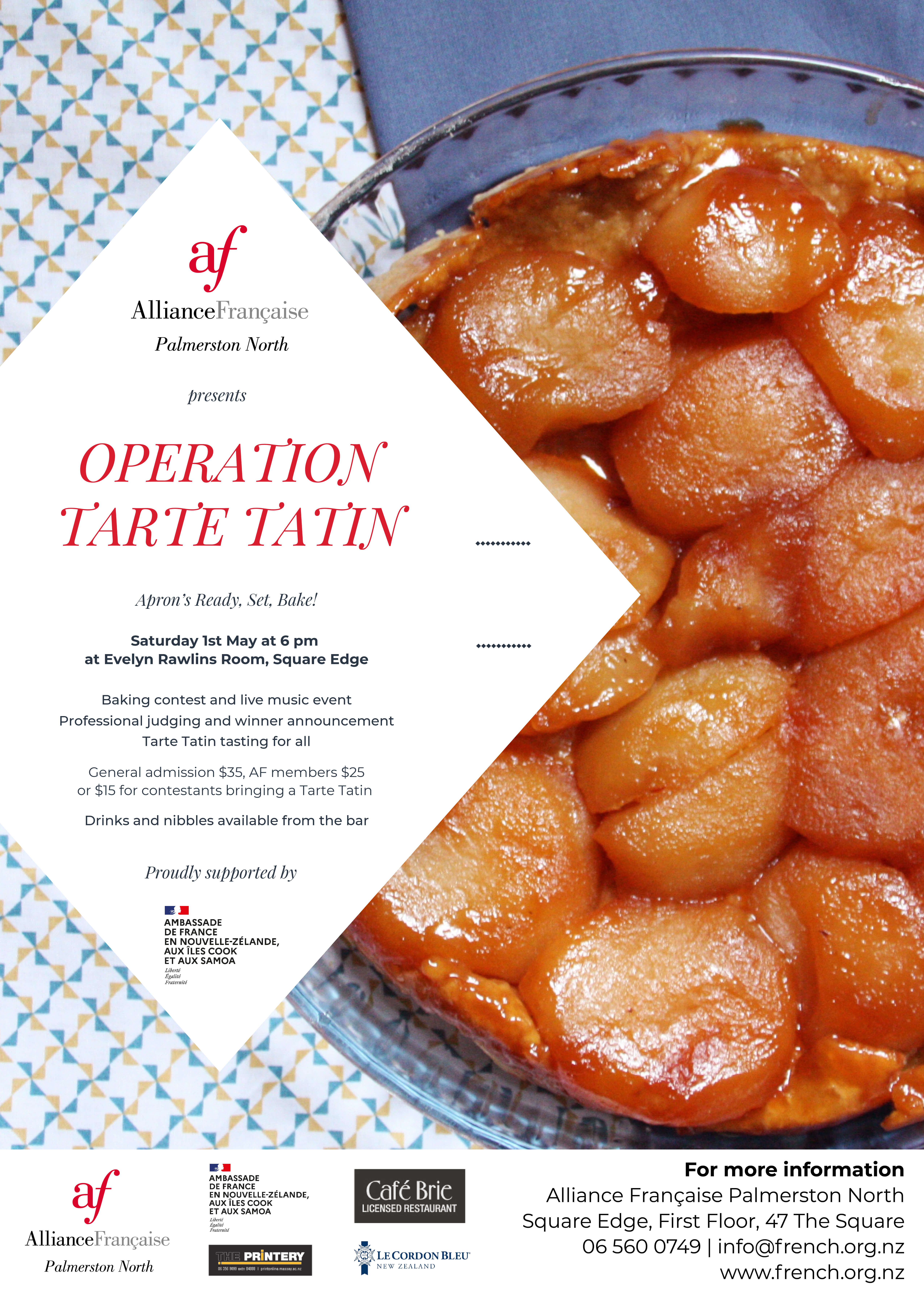 Admission to the Operation Tarte Tatin Evening is $15 for contestants, $25 for AF members and $35 for non-members.