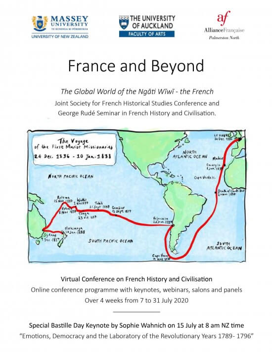 Join in for "France and Beyond: The Global World of the Ngāti Wīwī - the French", a virtual series of conferences with keynotes, webinars, salons and panels by the Joint Society for French Historical Studies Conference and George Rudé Seminar in French History and Civilization.