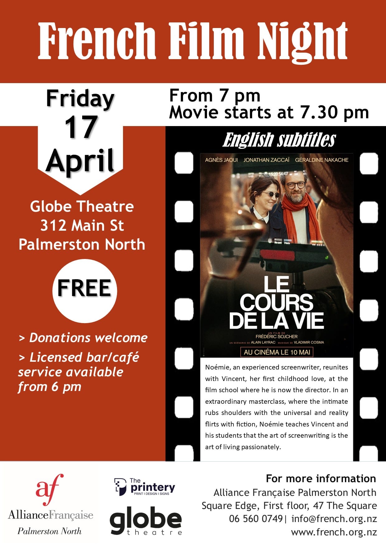 The film Le Cours de la vie (The Course of Life) will be screened in French with English subtitles.