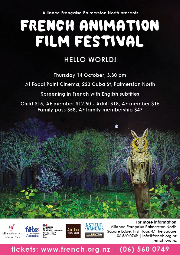 Alliance Française Palmerston North presents the French Animation Film Festival: a series of screenings for children, at Focal Point